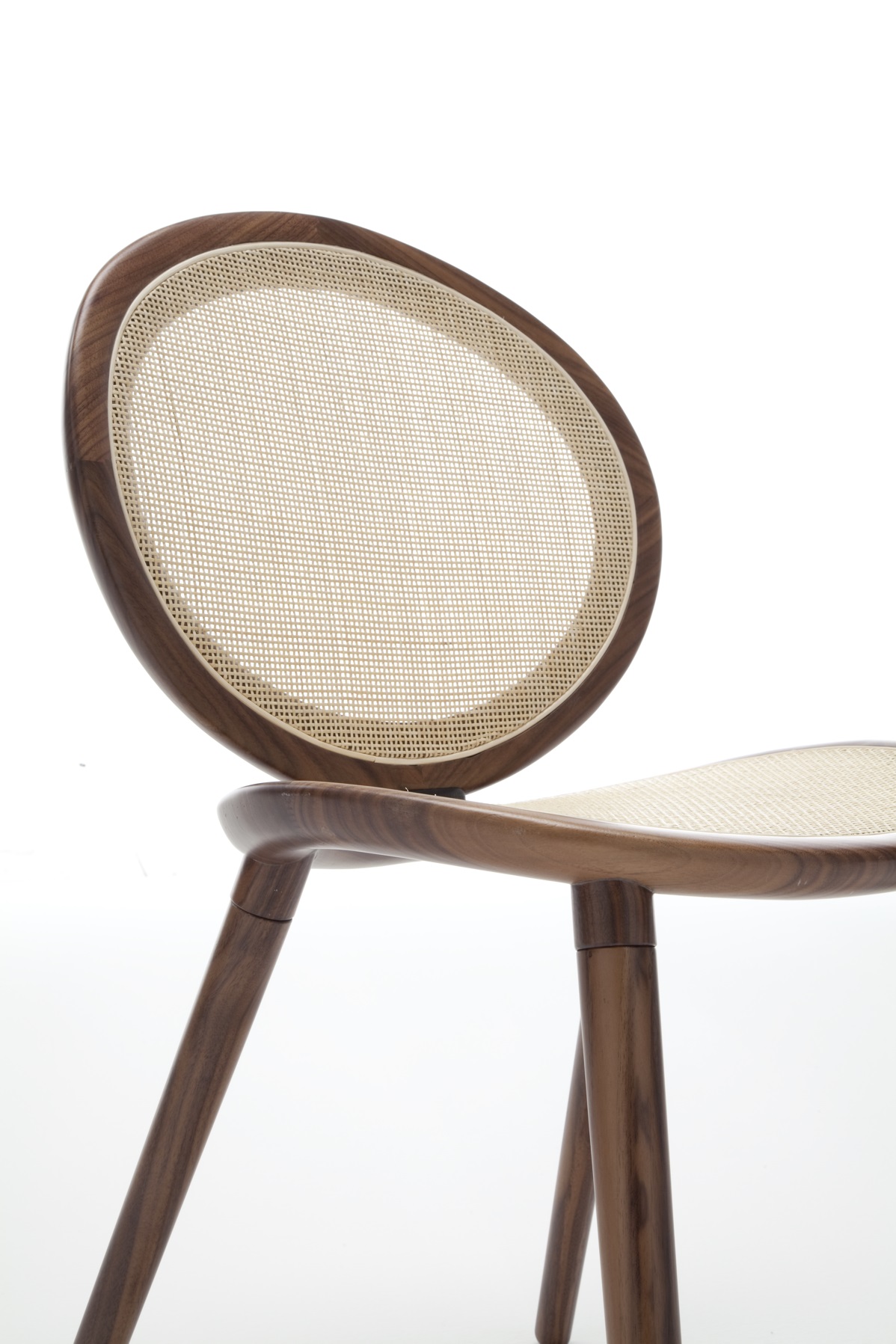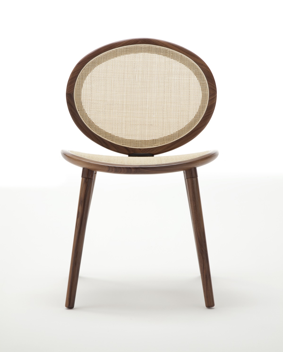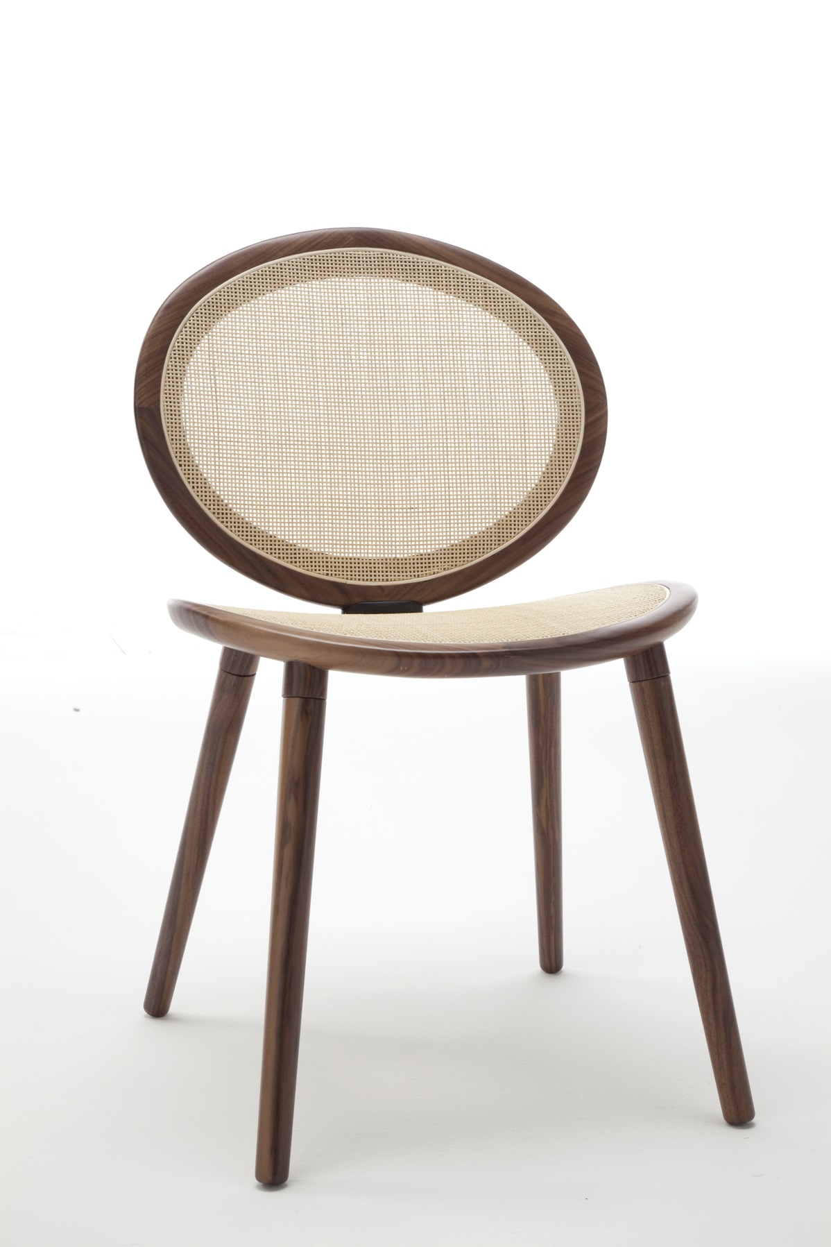 The shell is supplied in 13 different colours. The elegant 4-leg base in solid wood is available in American walnut or oak.